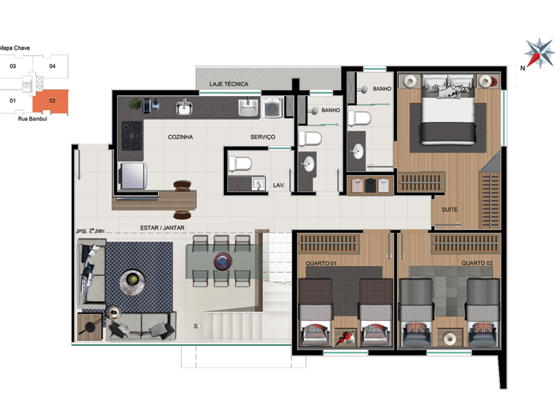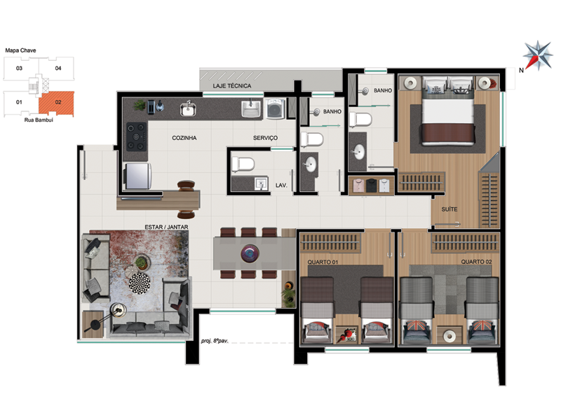 Localizado em rua tranquila e ao lado de toda conveniência e praticidade da Av. Bandeirantes.